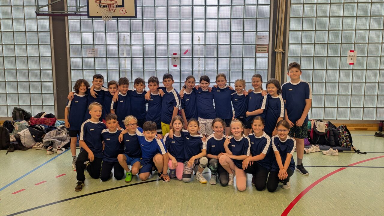Am 24.4.2026 machten sich 24 Jungen und Mädchen aus den Klassen 4a und 4b mit ihren Klassenlehrerinnen Frau Savelsbergh und Frau Schätzle-Rust auf nach Steele zur Humann-Trophy, einem Volleyballturnier für Kinder aus dem 4. Schuljahr. Beeindruckt von der großen Anzahl der teilnehmenden Mannschaften und der Geräuschkulisse gaben die Jungs- und Mädchenteams ihr Bestes und versuchten, innerhalb von 7 Minuten pro Spielrunde so viele Punkte wie möglich zu erzielen. Es wurde angefeuert, gejubelt und es war ein großer Zusammenhalt zwischen den Hinseler-Kindern spürbar. Zum Schluss wurden die insgesamt 19 teilnehmenden Jungenmannschaften und die 18 Mädchenteams aus Essen unter großem Applaus mit einer Urkunde und einer Süßigkeit geehrt. Wir sind stolz auf unsere vier Volleyballteams, die sich nicht nur den 7., 9. 10. und 11. Platz sichern konnten, sondern die auch gezeigt haben, dass Teamgeist und Fairplay für sie selbstverständlich ist.
