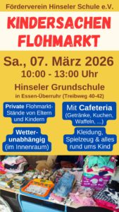 Auch der jährliche Kindersachen-Flohmarkt in der Hinseler Schule wird vom Förderverein organisiert. Dort haben Kinder und Eltern bereits im Frühling die Gelegenheit, wettergeschützt in den Fluren der Schule ihre „Dinge rund ums Kind“ anzubieten. Der Förderverein betriebt die Cafeteria sammelt damit Erlöse für den gemeinnützigen Zweck.