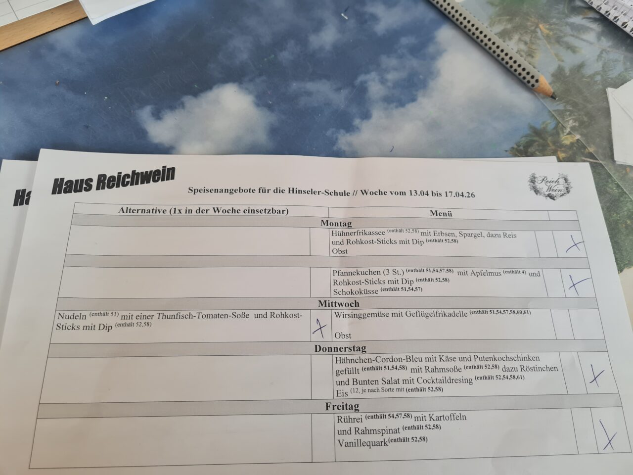 23 März 2026 Mittagessen 13.04 bis 17.04.2026 von Hinseler Schule | Veröffentlicht in: Mittagessen | 0