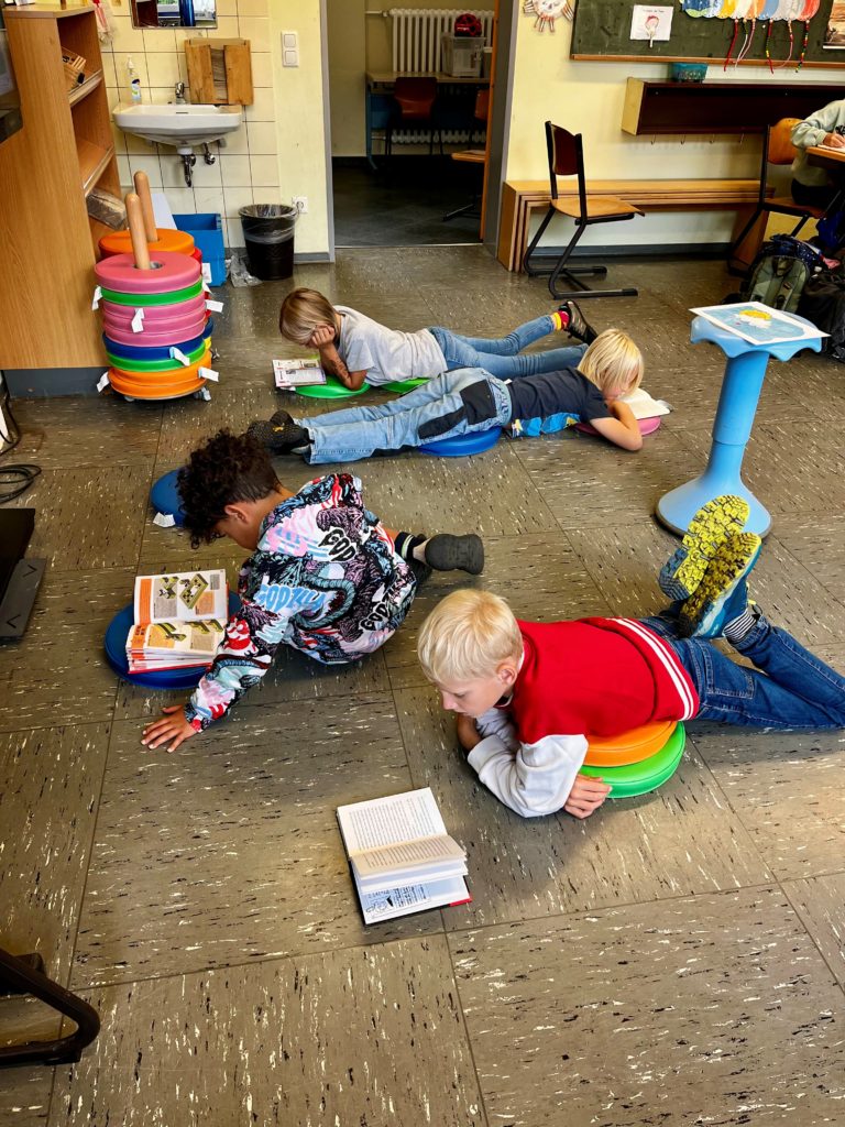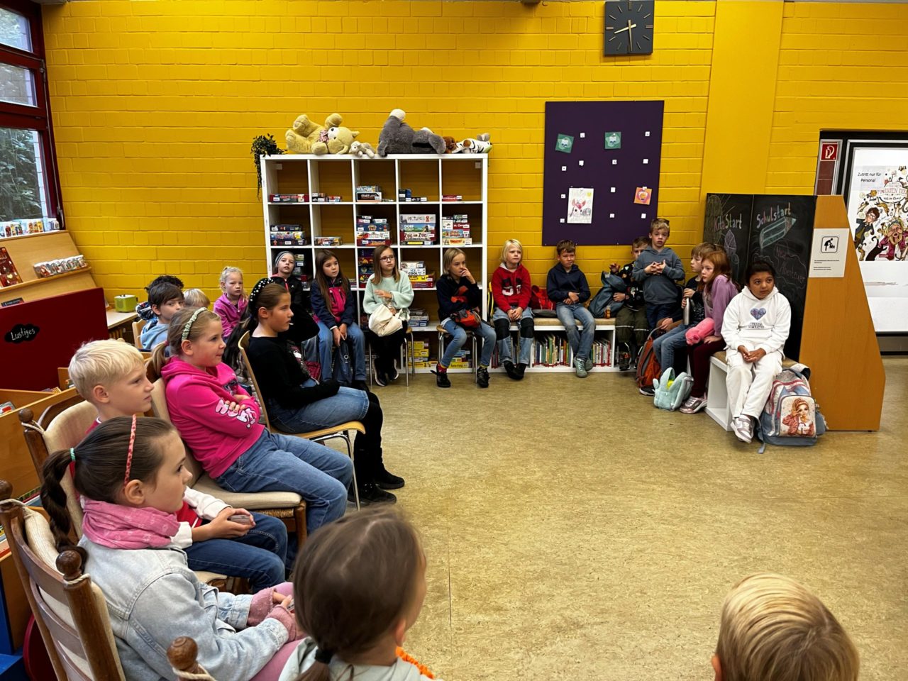 Heute haben wir die Stadtteilbücherei hier in Überruhr besucht und richtig gut kennengelernt. Bei einer Rallye mit dem iPad mussten wir in Gruppen viele Fragen zu der Bücherei beantworten. Hinterher durften wir stöbern und uns auch etwas ausleihen. In der Schule haben wir gleich angefangen zu schmökern. Das war schön!